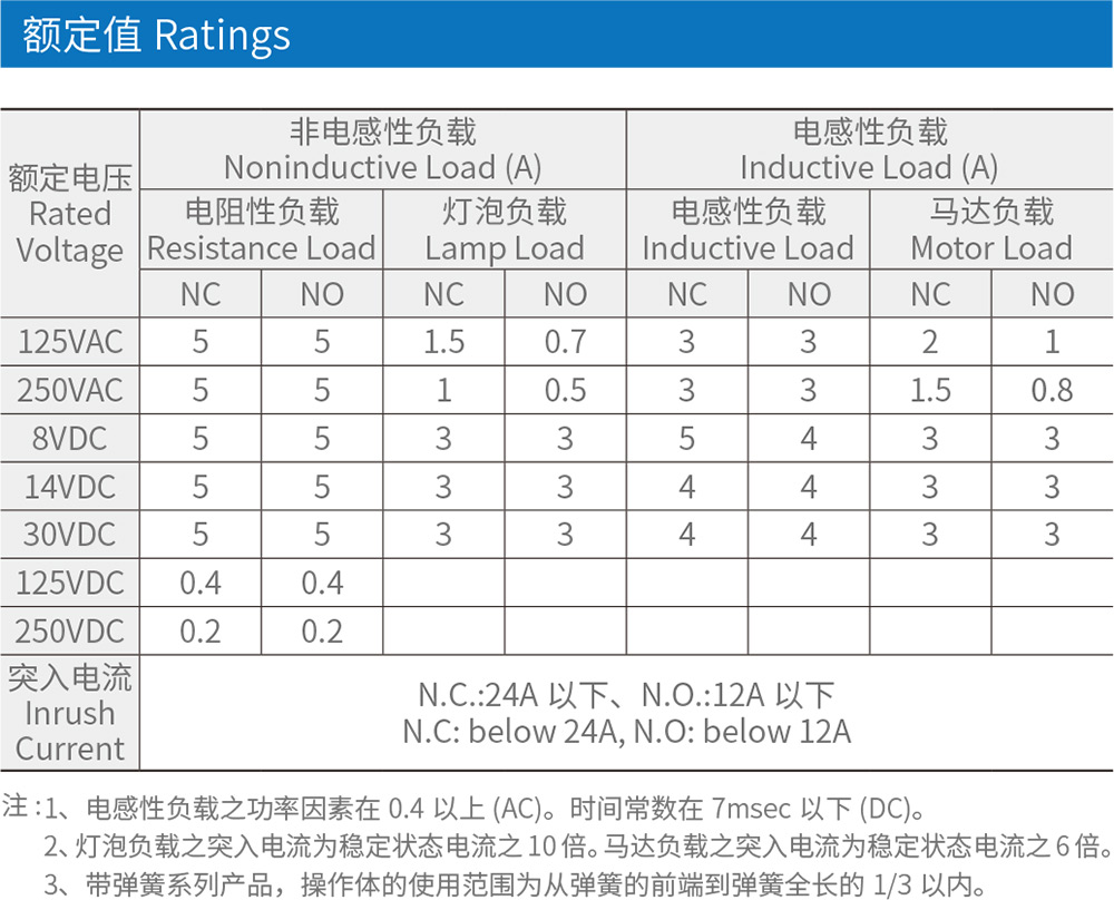 內(nèi)藏觸點座有雙簧片機構(gòu),機械壽命更長