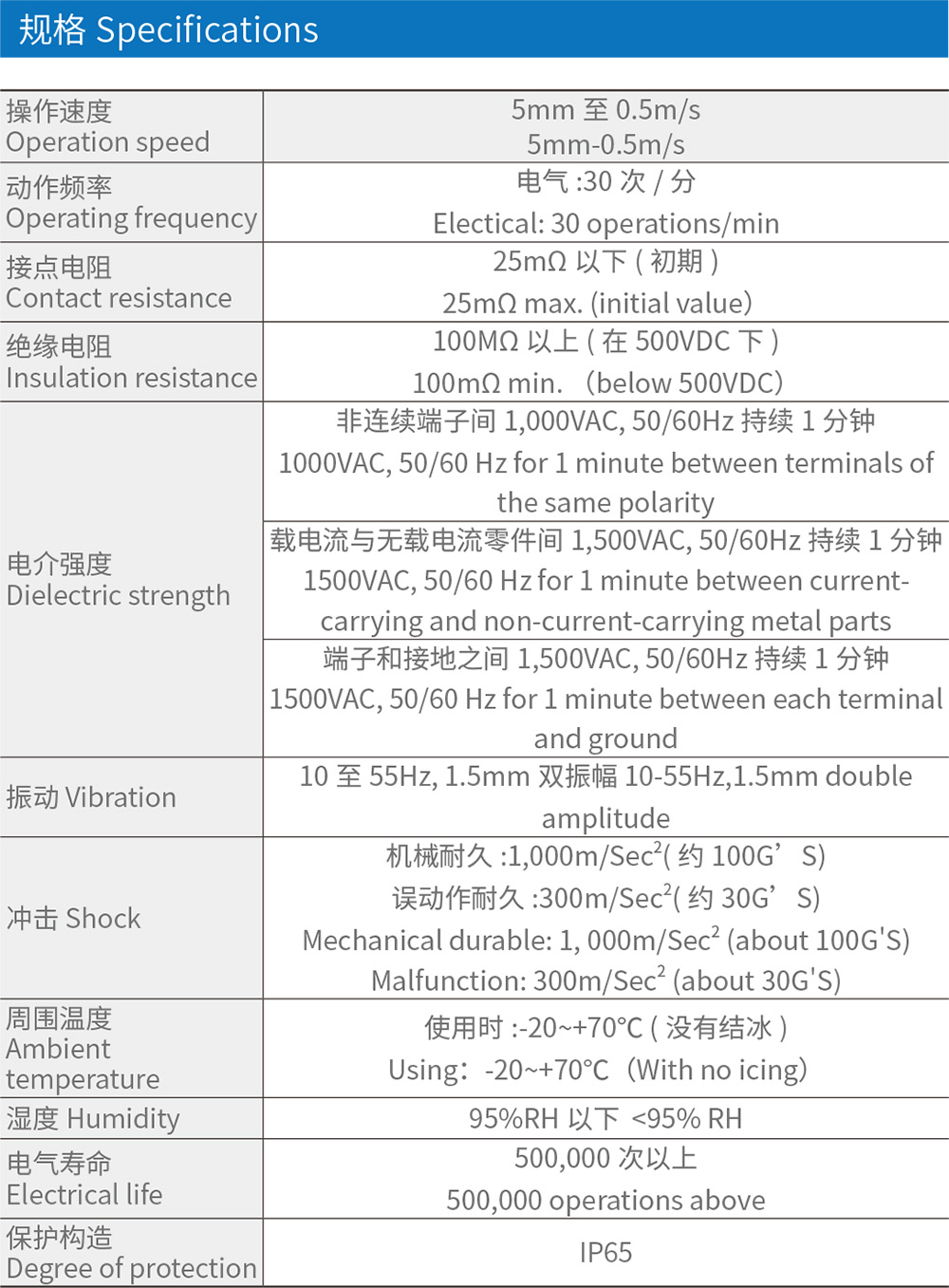 內(nèi)藏觸點(diǎn)座有雙簧片機(jī)構(gòu),機(jī)械壽命更長
